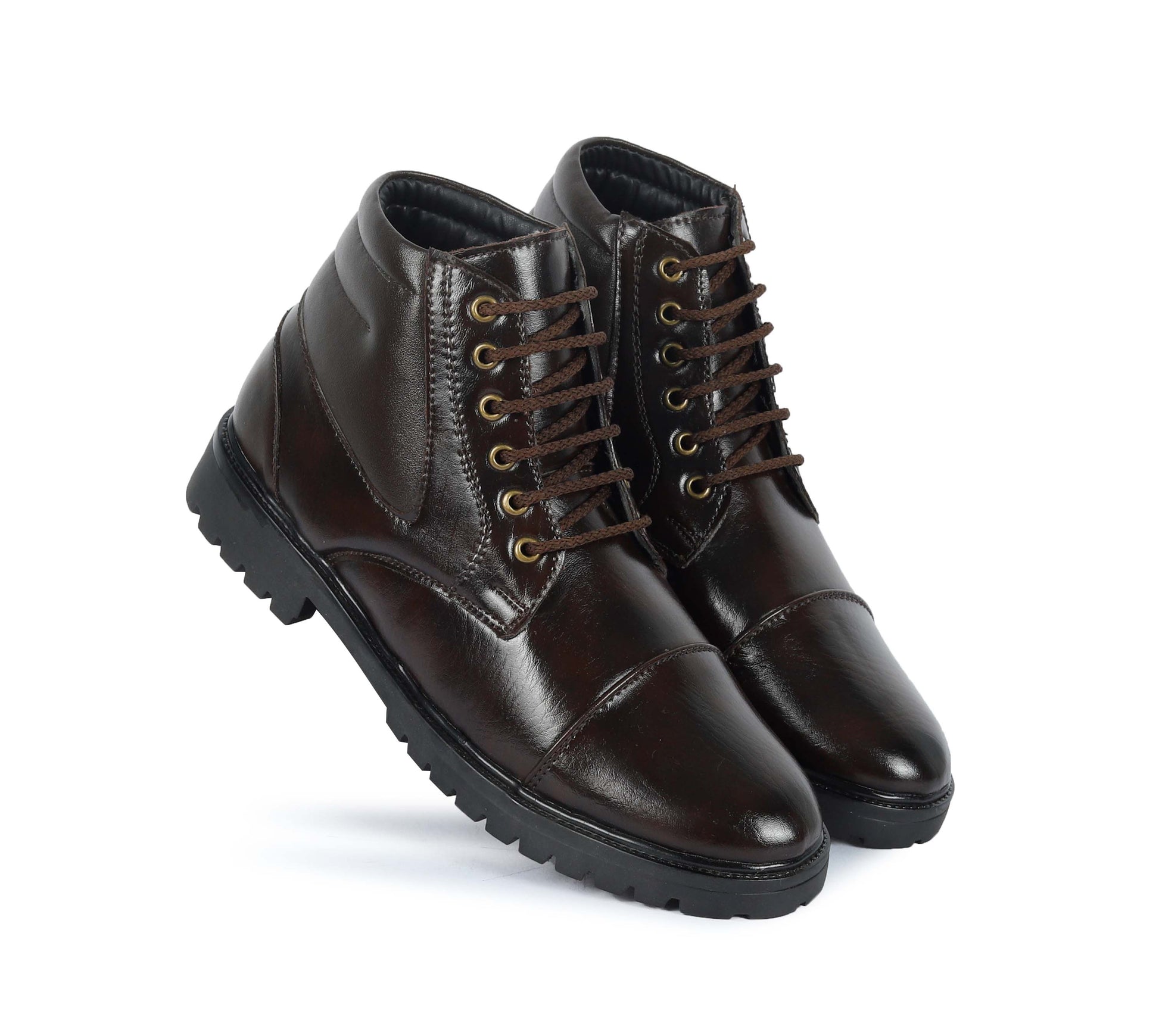 | Kavsun Derby High Ankle Boot Is A Stylish And Rugged Choice For Men. This Black Boot Features A Closer Lace-Up Design And A Synthetic Material Upper, Paired With A Durable TPR Sole For Excellent Grip. The High Ankle Design Provides Added Support, While The Sleek Lines And Classic Derby Style Make It Perfect For Formal And Business-Casual Occasions. |