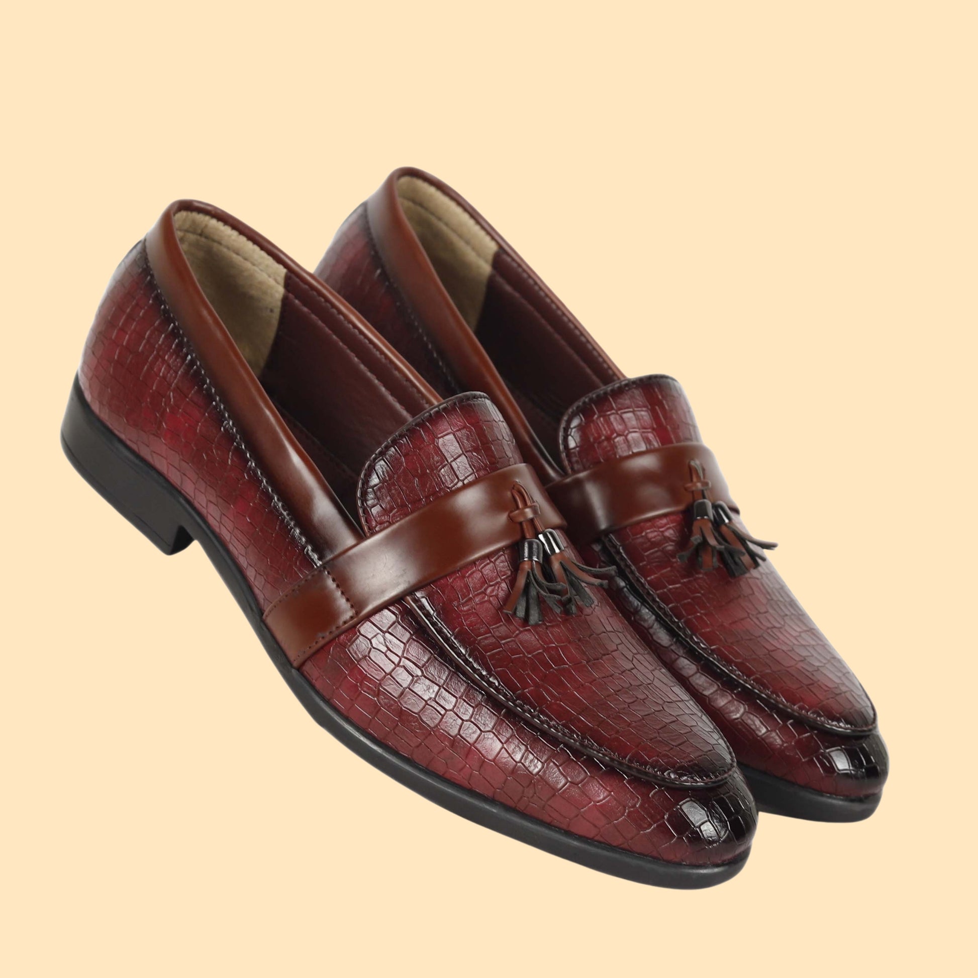 Kavsun Men Tassels Loafer Cherry