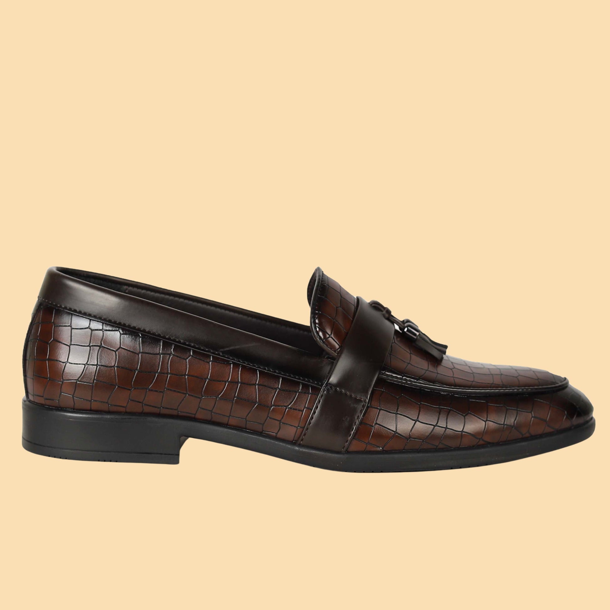 Elevate your style with Kavsun's handcrafted Party Wear Slip-Ons Tassel Loafer. Made from high-quality synthetic patent leatherite with a durable TPR sole, it offers a trendy look and superior grip, perfect for semi-casual and party outfits.